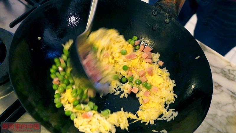 Sarebbe l caso di non utilizzare con frequenza il mestolo perchè potrebbe rompere il riso. Il riso deve essere mischiato quasi esclusivamente con movimenti del WOK
